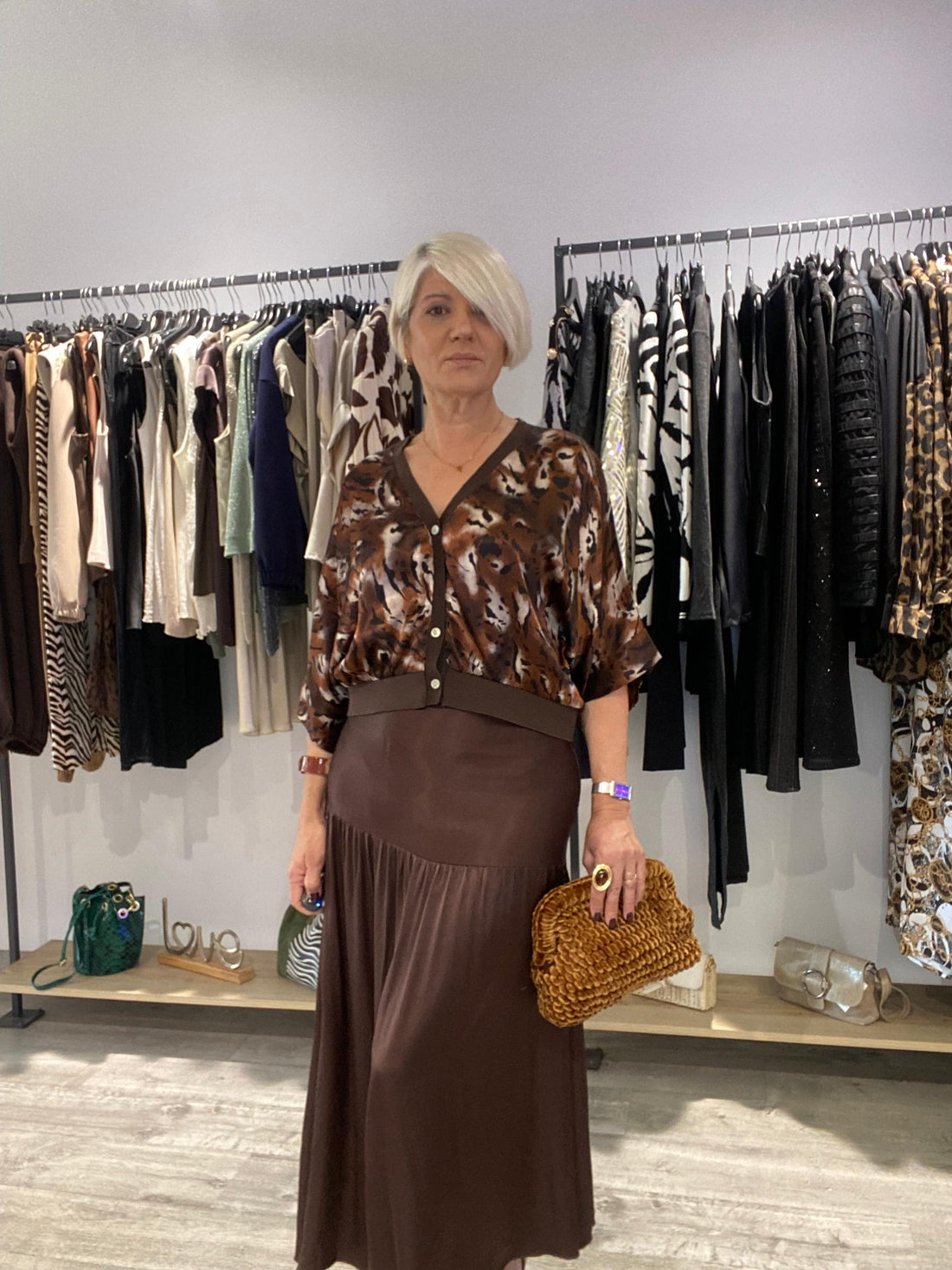 Clutch chenilla marron Camel