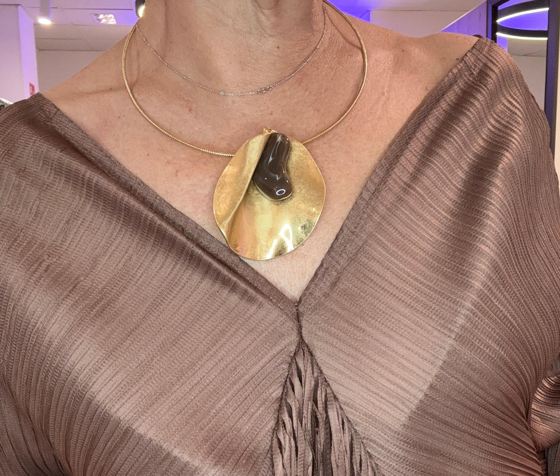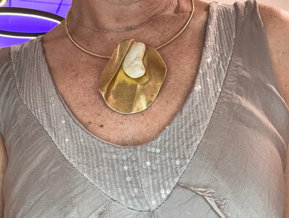 Gargantilla Agatha en acero dorado con piedra naturalUna pieza delicada y elegante que combina el...