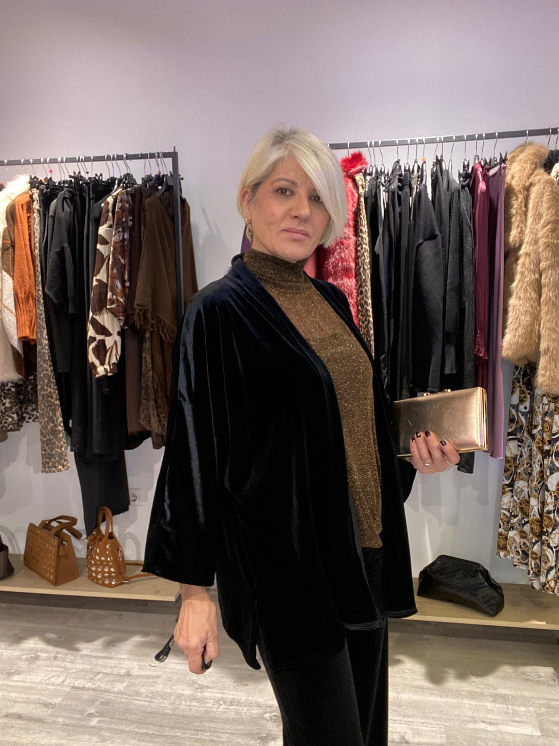 Elegancia fluida en terciopelo negro. Este kimono de terciopelo es la pieza perfecta para añadir...
