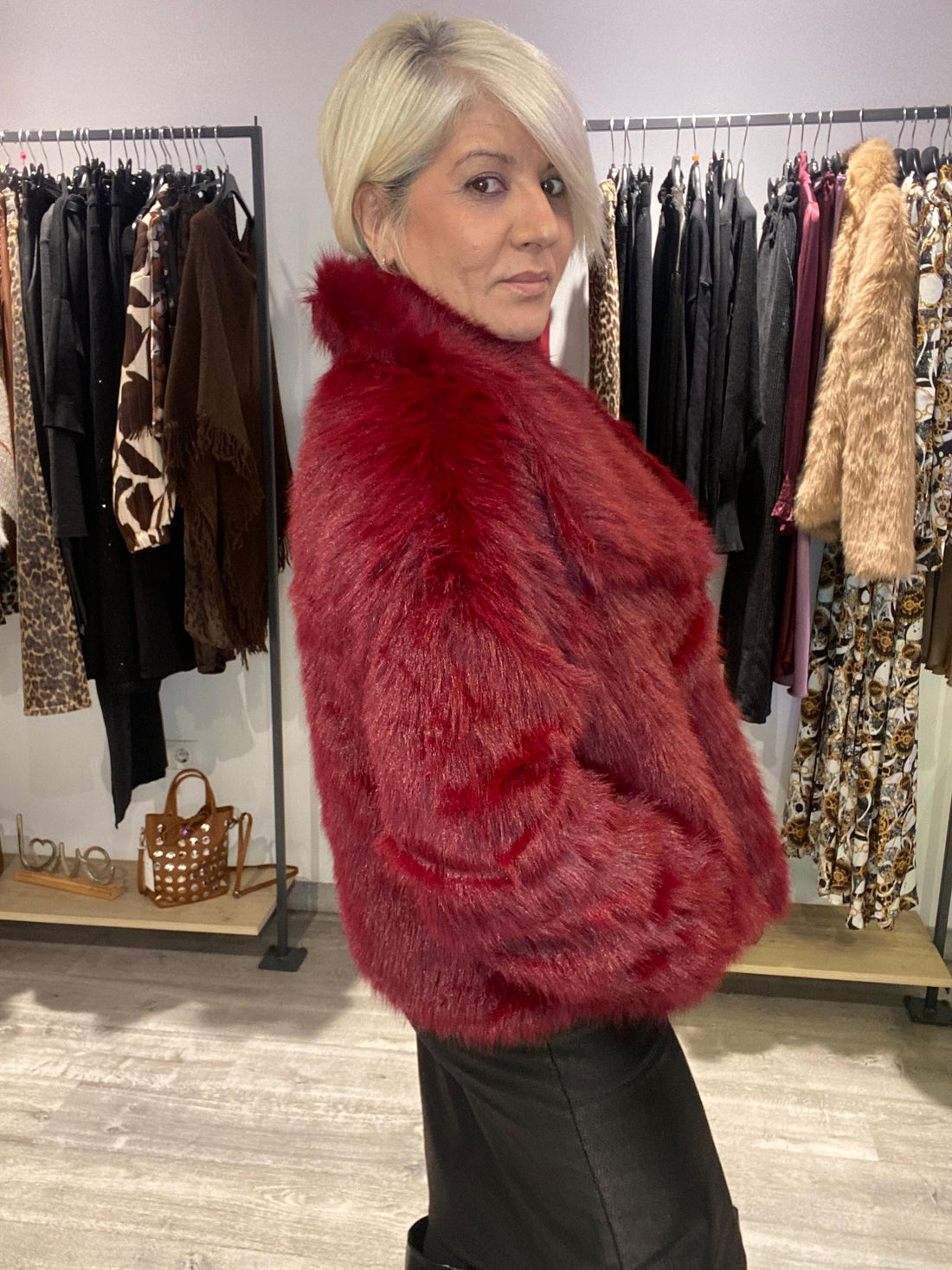 Chaqueta Pelo Burdeos - Calidez Boho-Luxe Talla Única 38-42