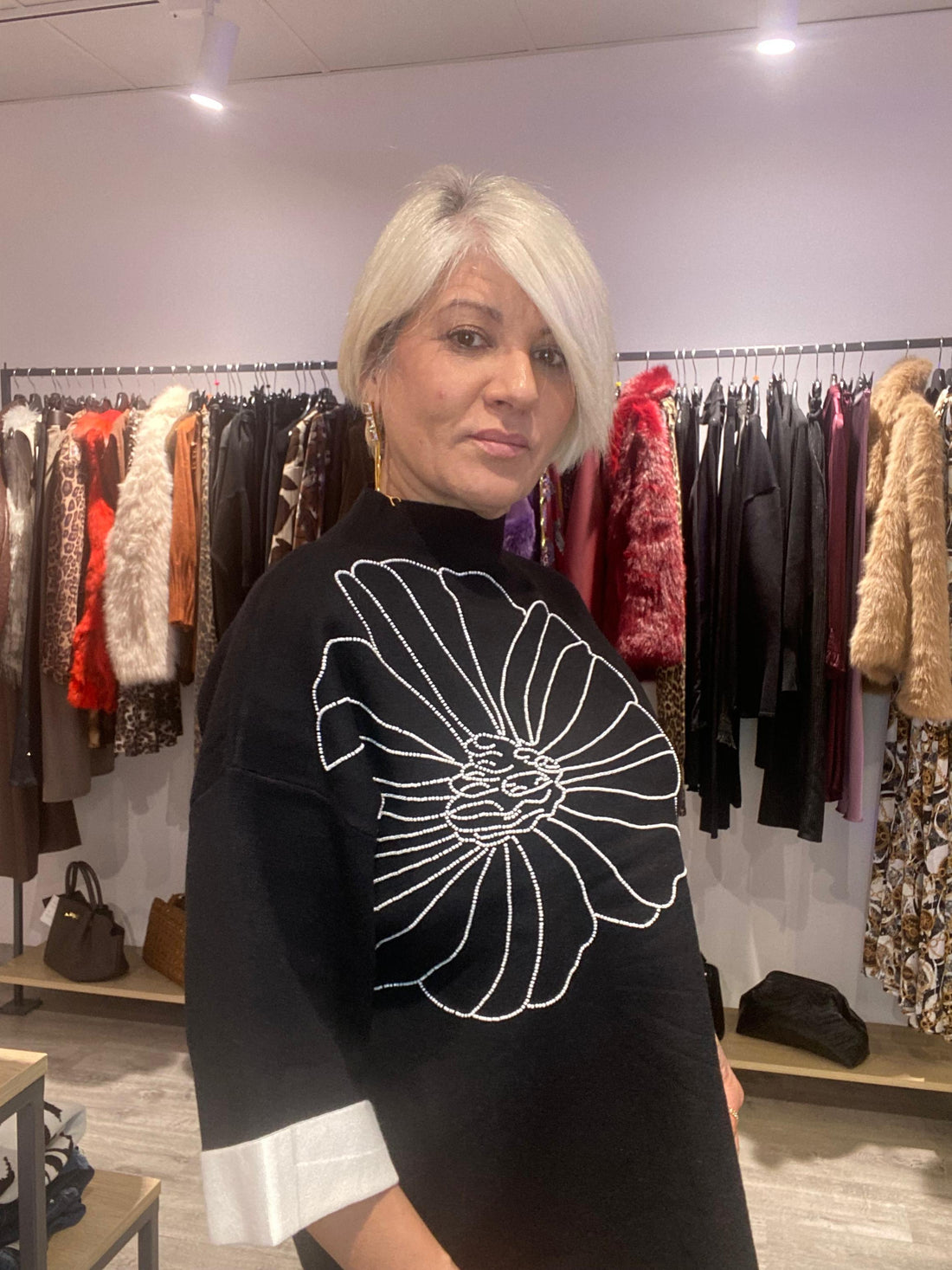 Jersey Flor - Romanticismo Bohemio en Cada DetalleEste jersey delicado con detalles florales captura la...