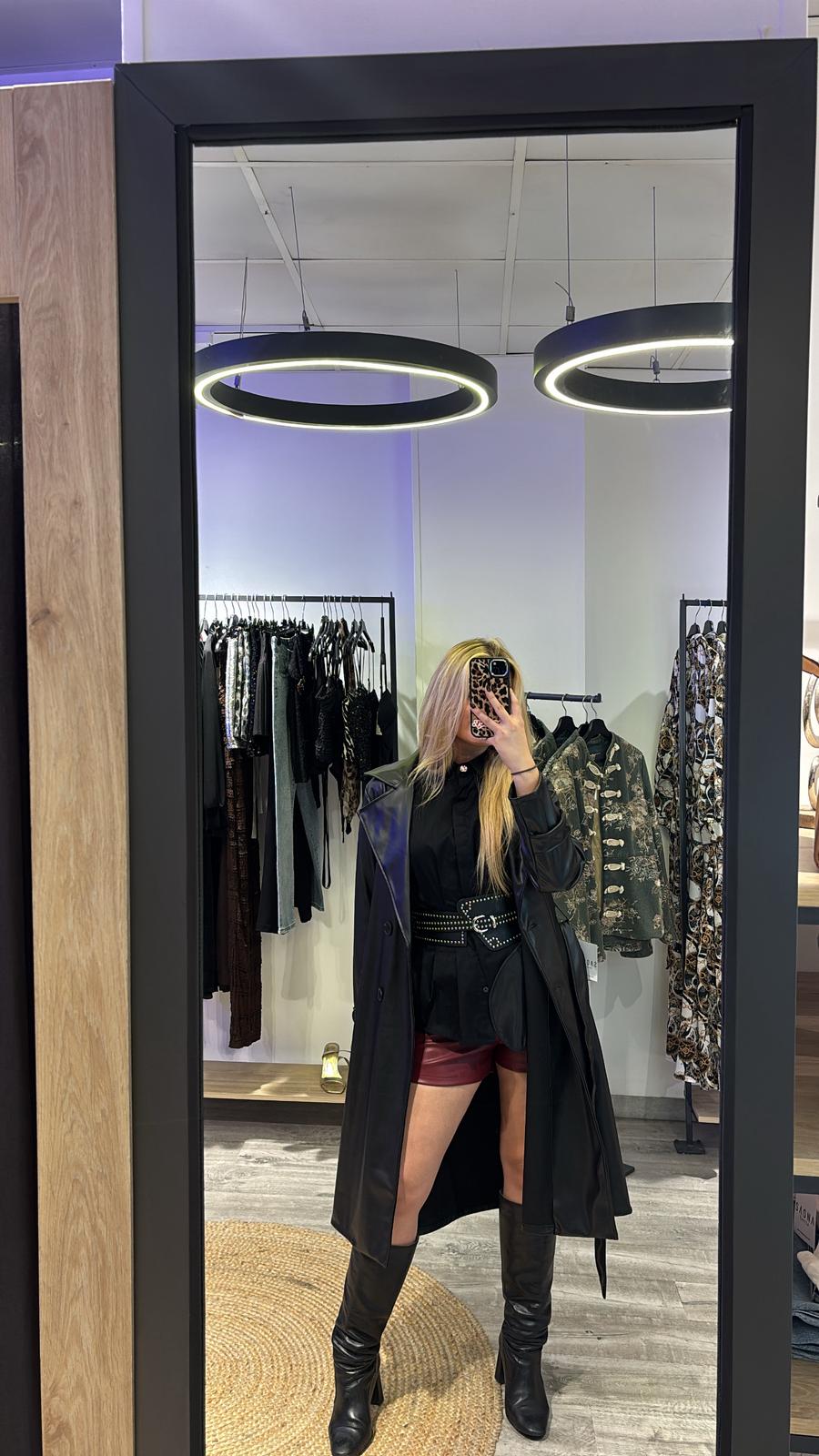 Pantalón polipiel con bolsillos y cierre con cremallera trasera, por tallas