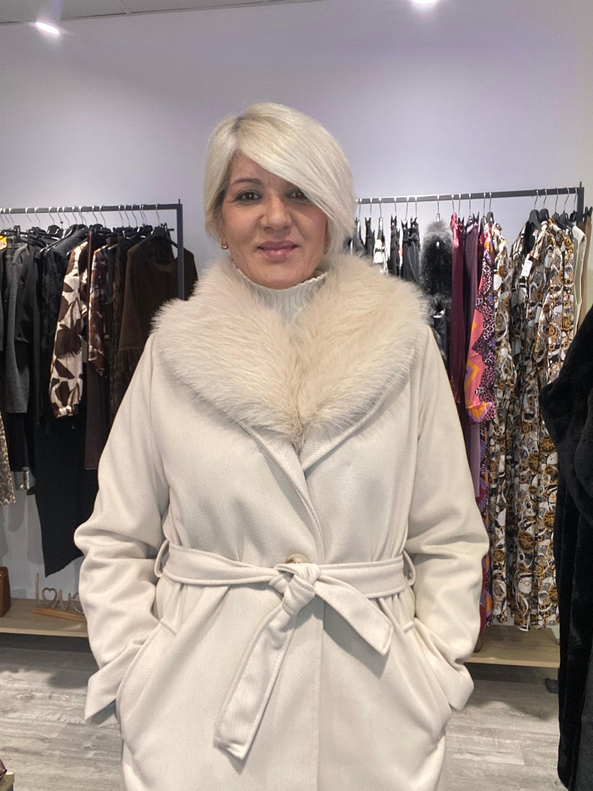 Abrigo Largo Luna con Solapa de Pelo - Boho Luxe