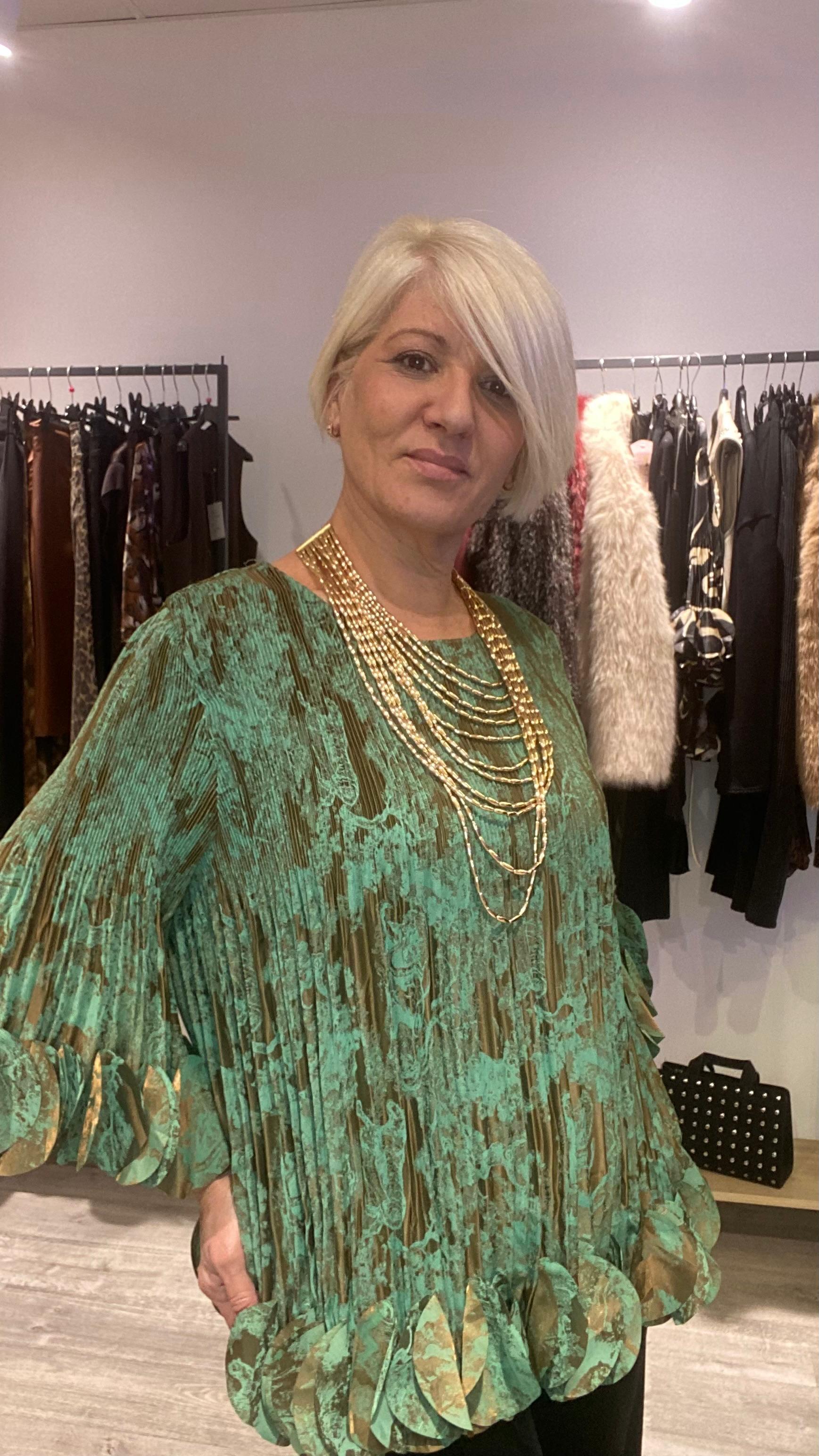 Blusa agua marina que captura la esencia del Mediterráneo con su diseño fluido y sofisticado. Una prenda versátil que aporta frescura y elegancia a tu estilo boho-luxe.