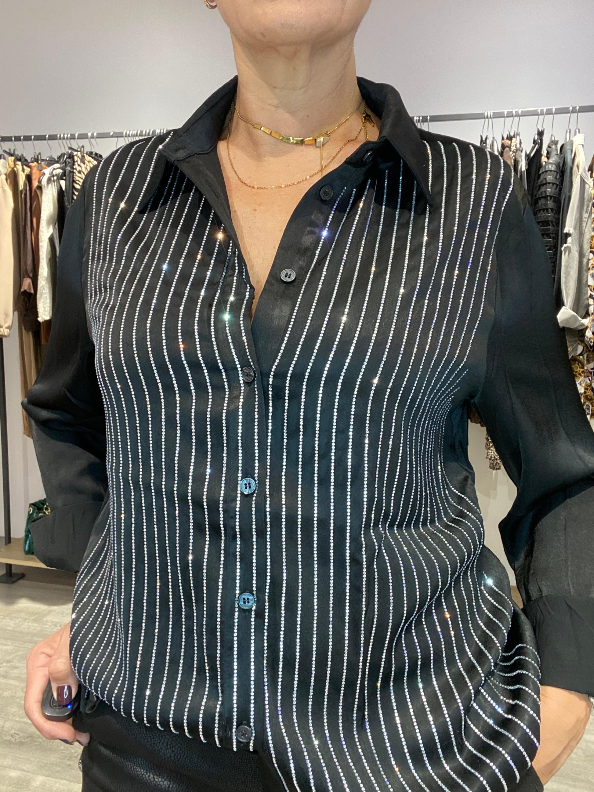 Camisa con fantasía pedrería , tejido satinado muy sutil , disponible en talla S M L