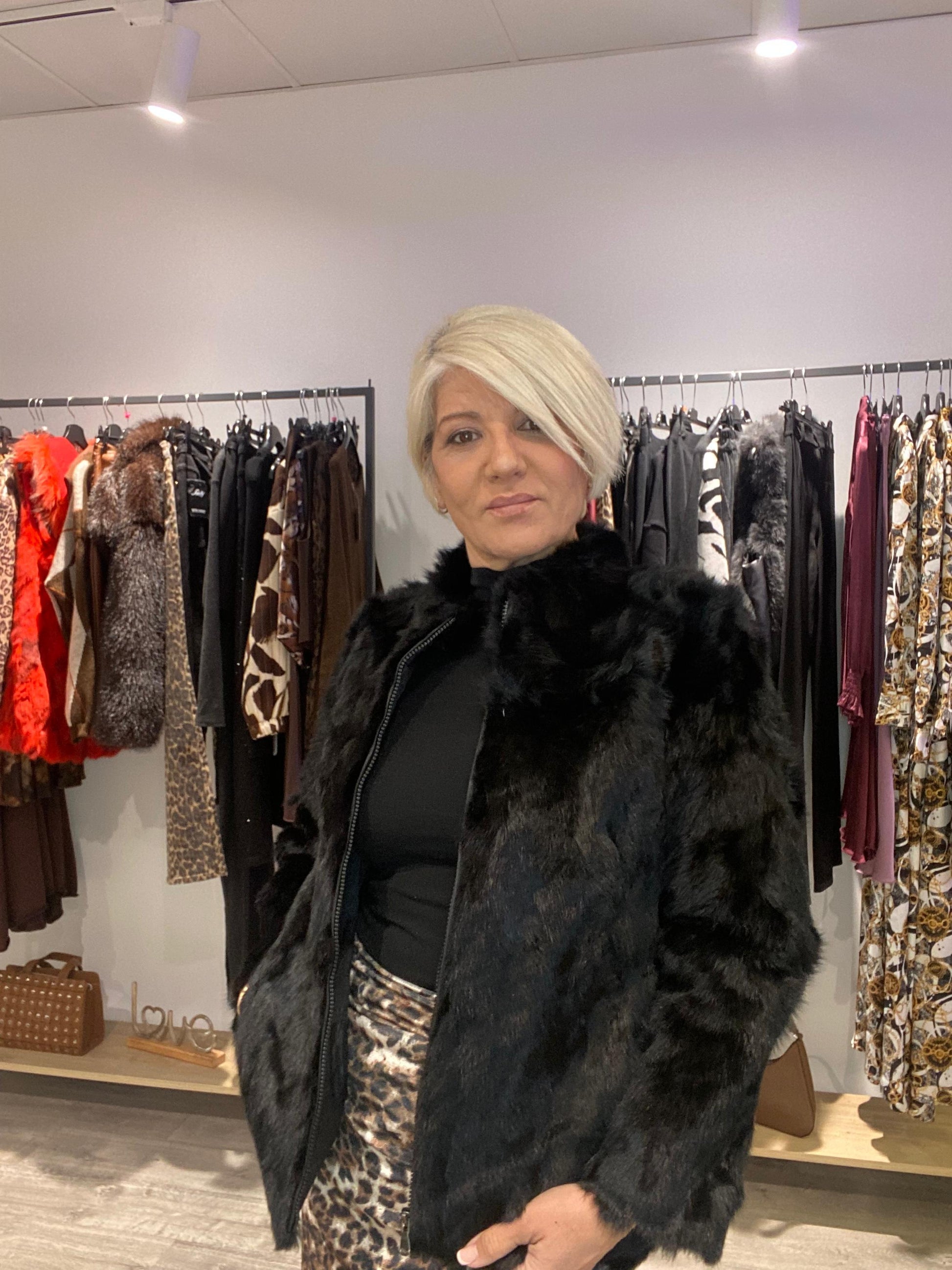 - Pelo sintético suave: Textura lujosa que aporta calidez sin renunciar al estilo