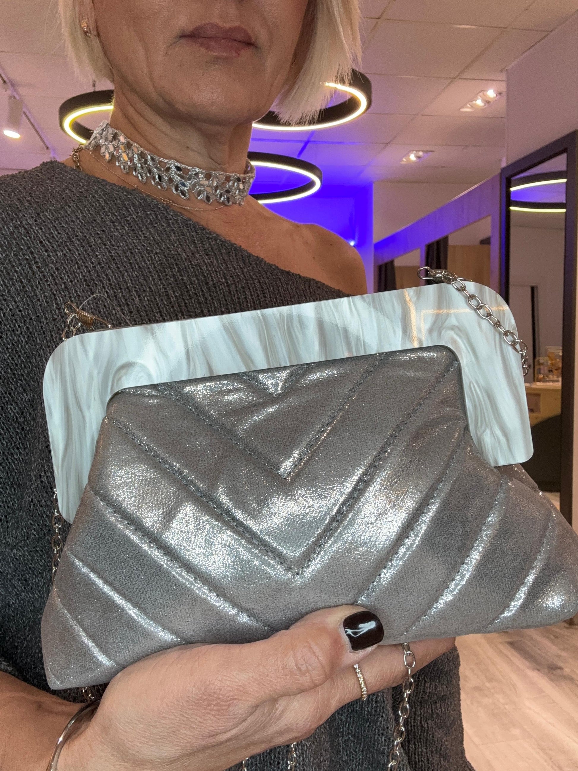 Clutch plata cierre nácarado