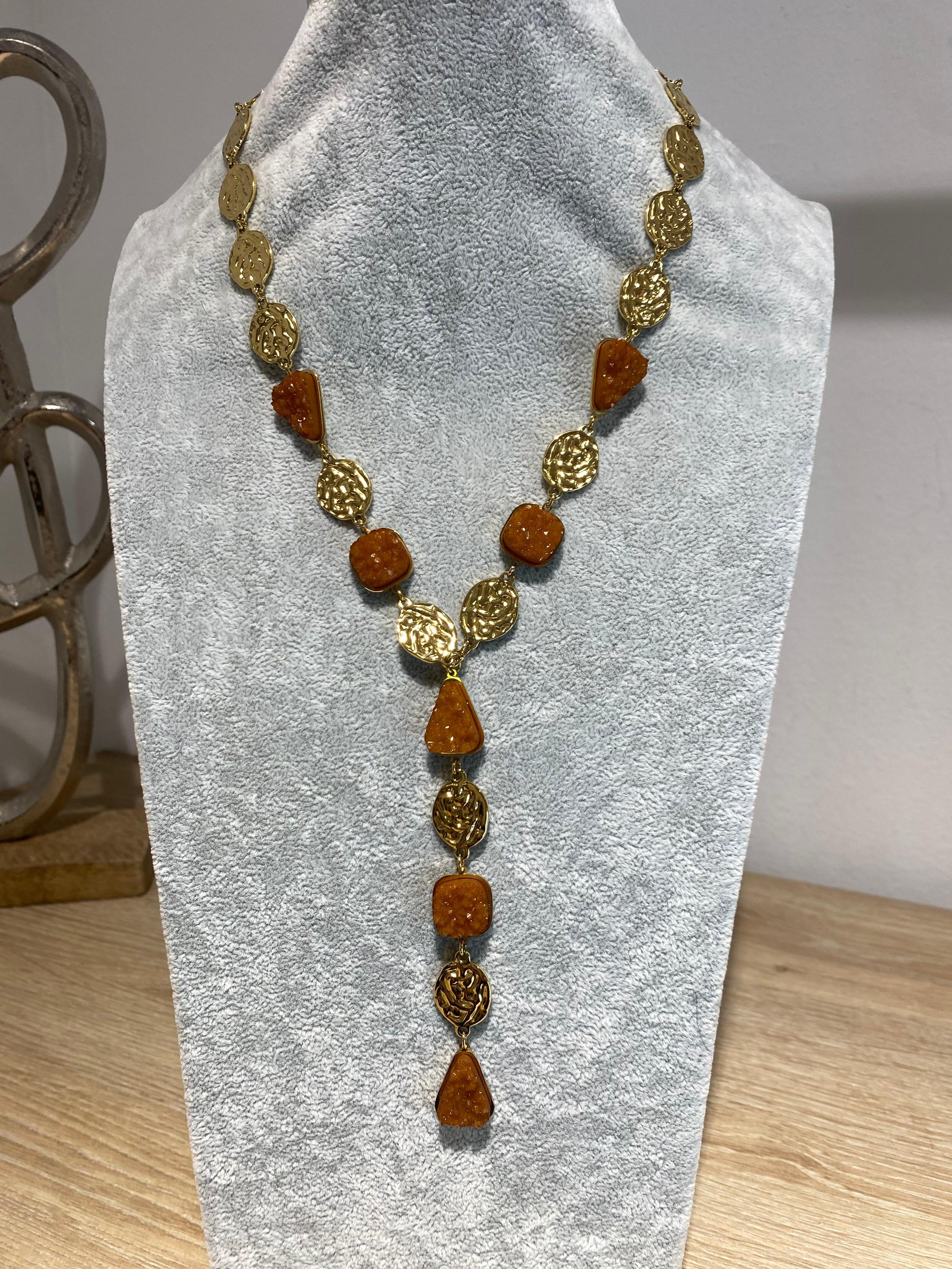 Descubre este Colgante de Acero con Piedras Naturales, una pieza de joyería única que combina la durabilidad del acero inoxidable con la belleza natural de las piedras. Perfecto para añadir un toque boho-luxe a cualquier look.