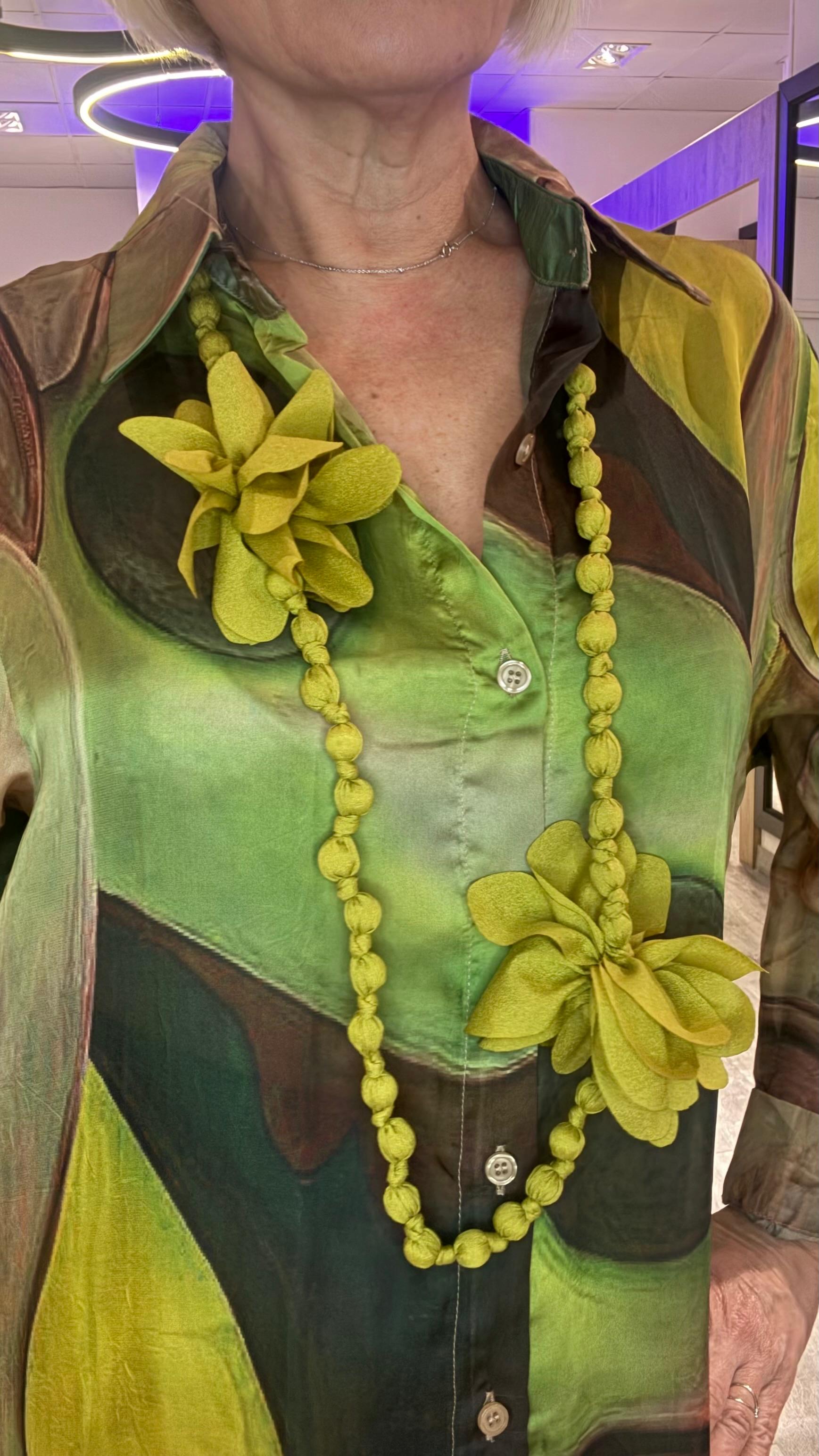 Collar cuentas y flores tela