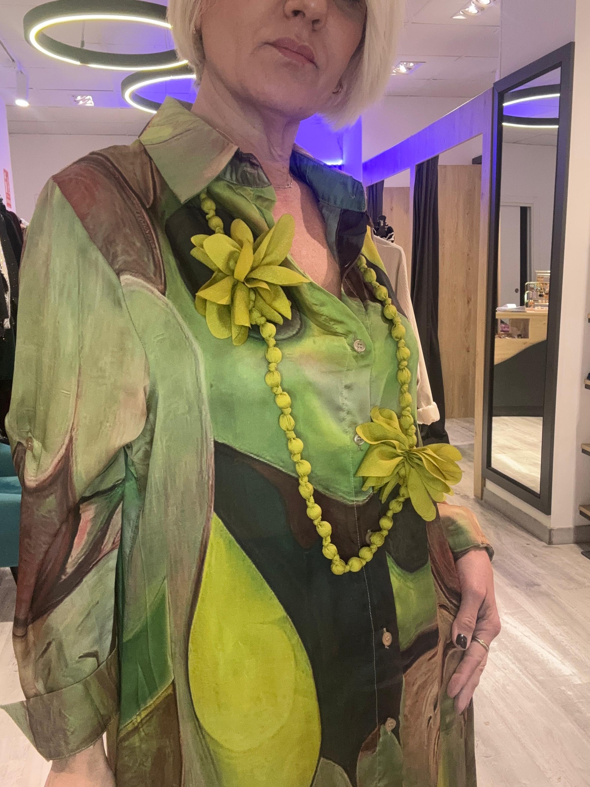 Conjunto Bali con estampado elegante y sofisticado. Tejido de alta calidad que ofrece comodidad y fluidez, perfecto para lucir impecable en ocasiones especiales con un toque boho-luxe.