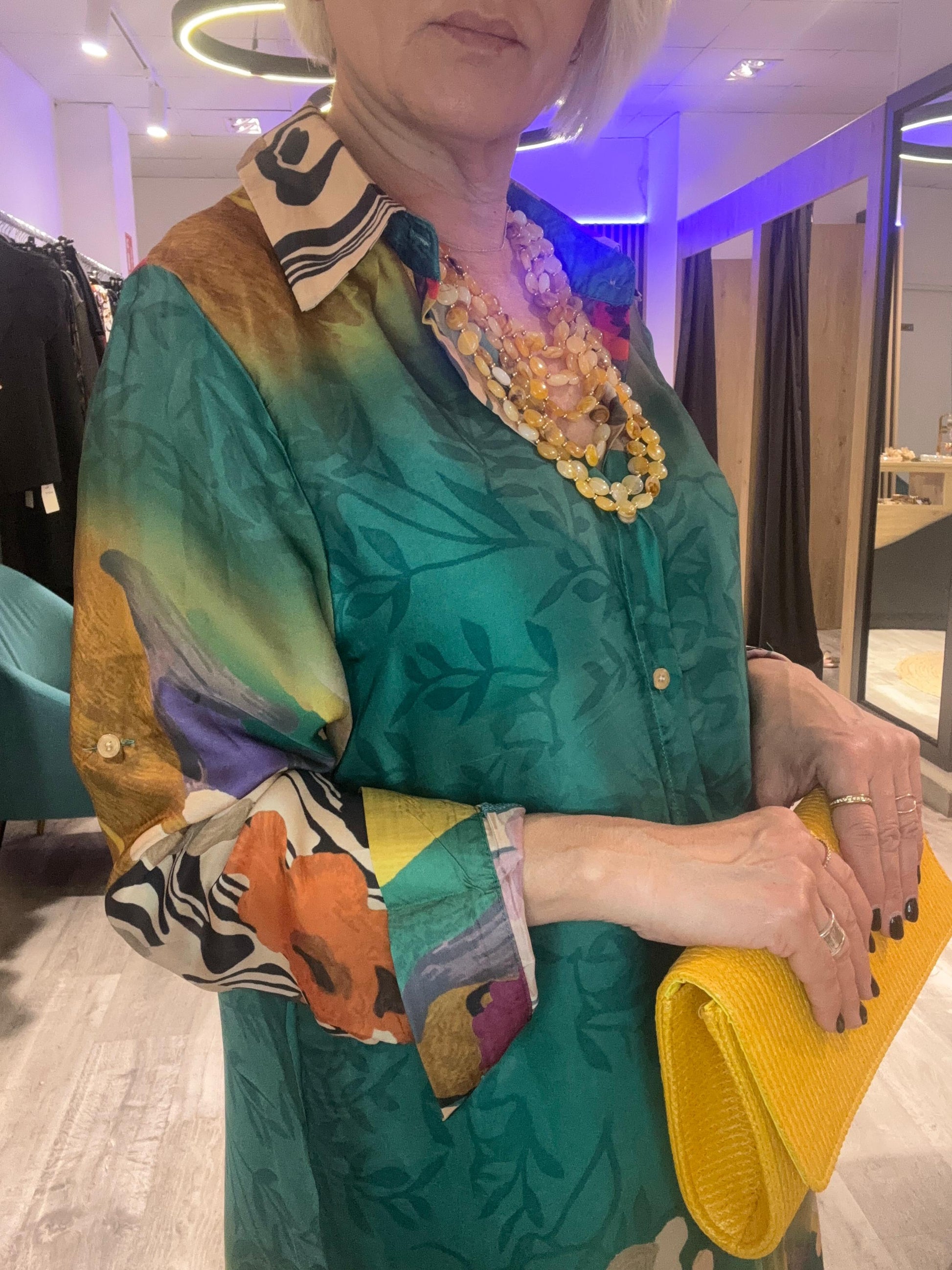 Conjunto Copacabana con estampado elegante y sofisticado. Tejido de alta calidad que ofrece comodidad y fluidez, perfecto para lucir impecable en ocasiones especiales con un toque boho-luxe.