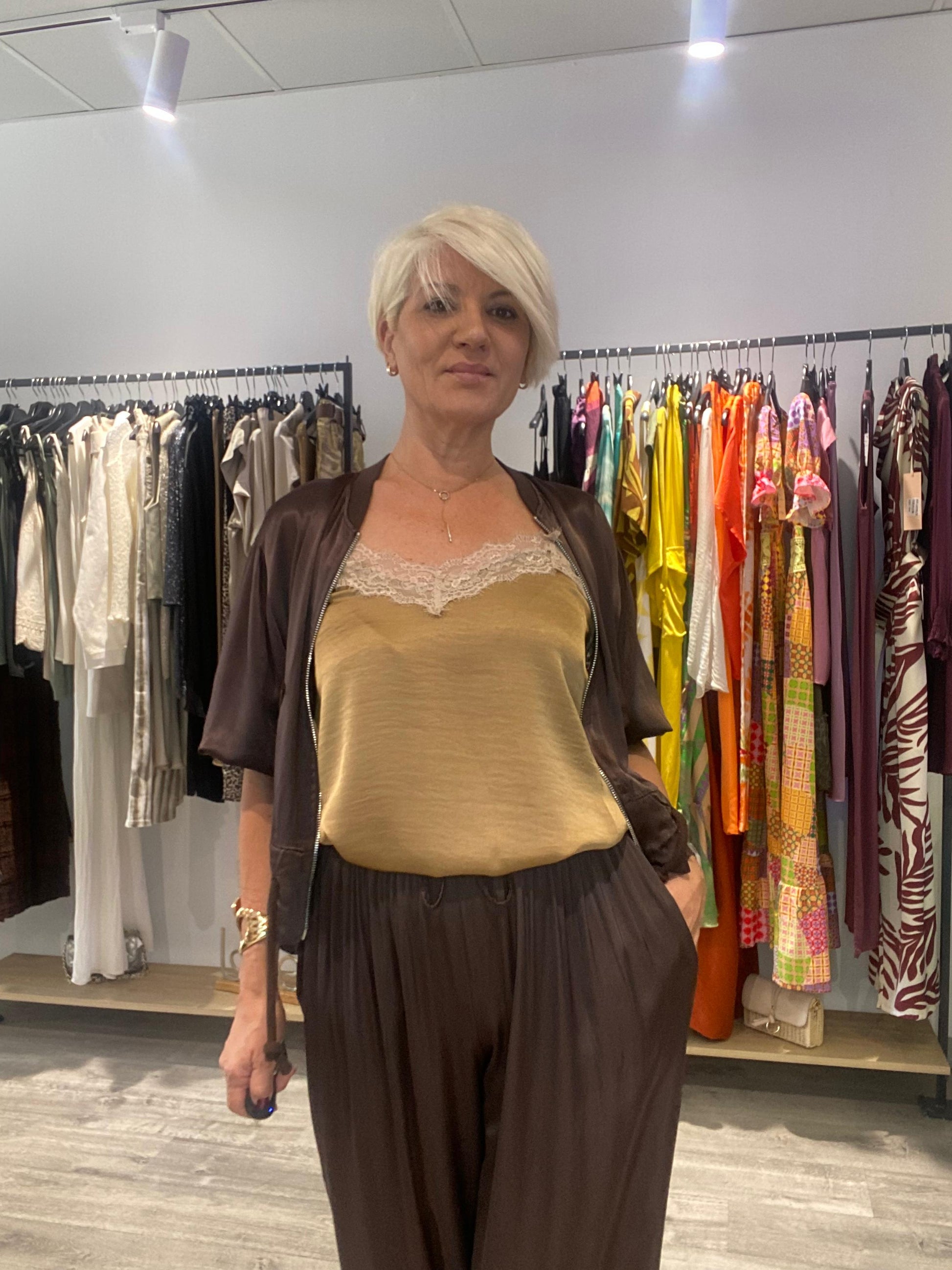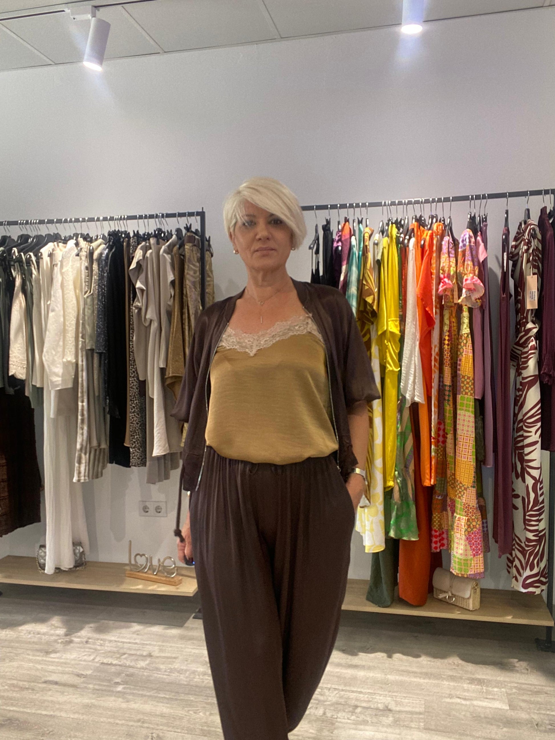 talla única 36/44, marrón chocolate bomber y pantalon bombacho