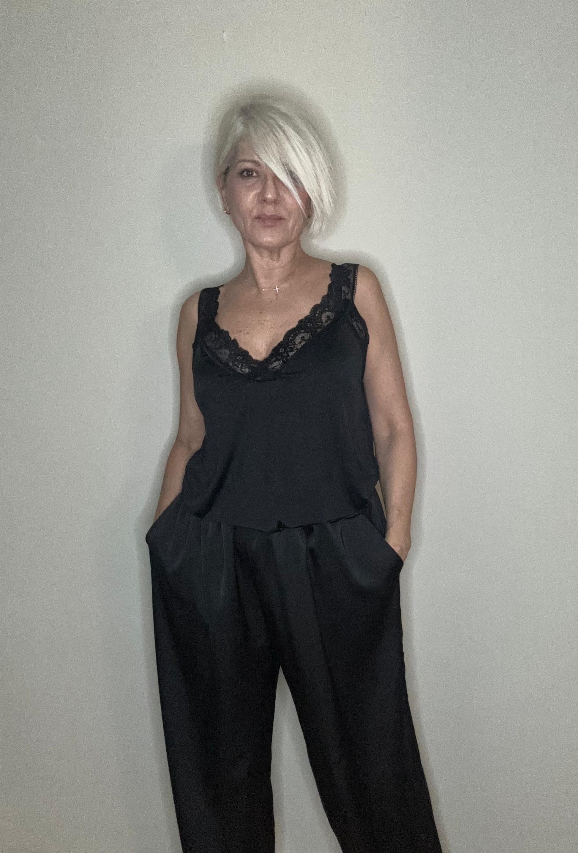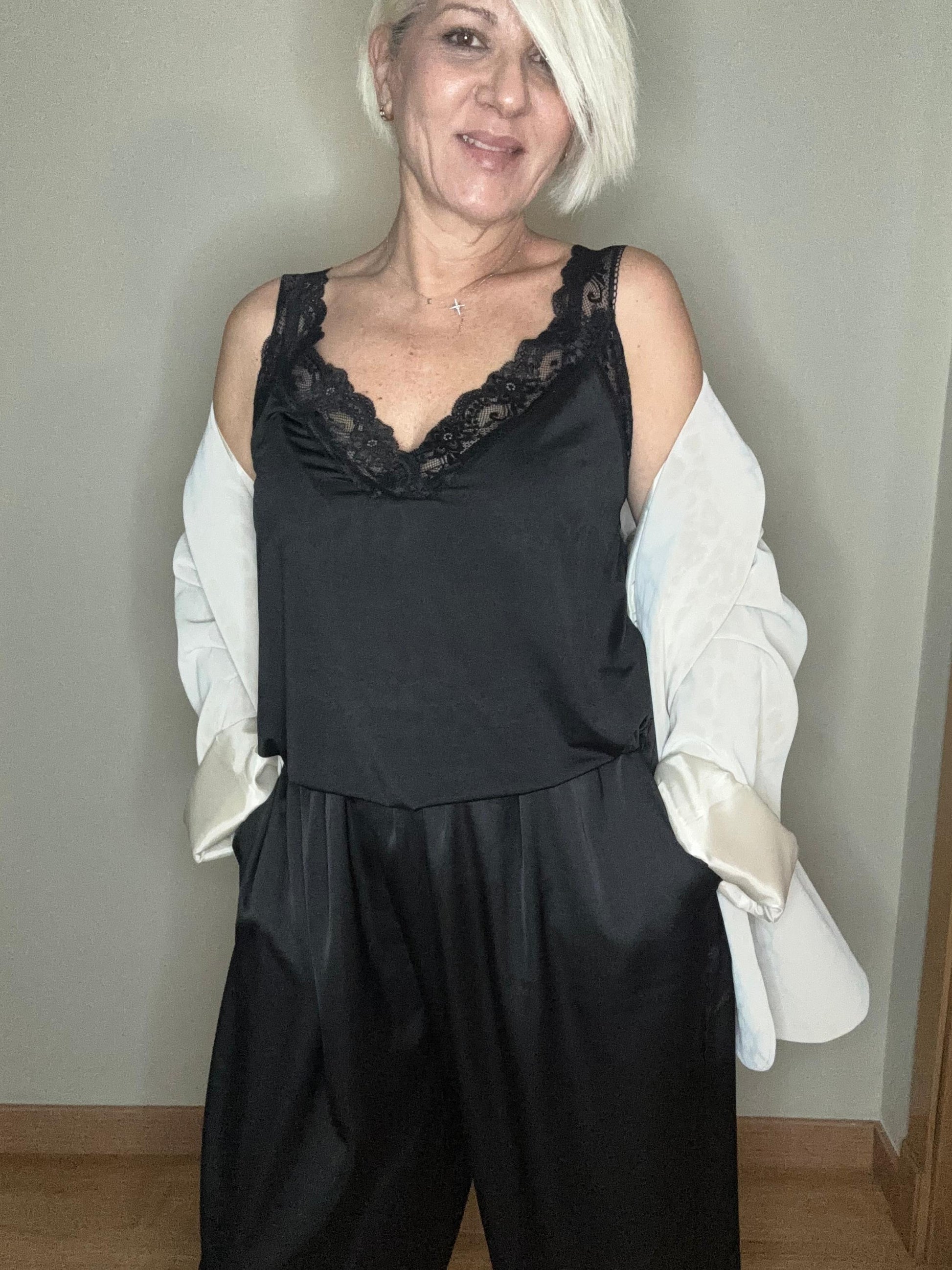 Lencero negro con detalles de encaje delicado. Diseño elegante y favorecedor que realza tu silueta con un toque sofisticado y sensual.
