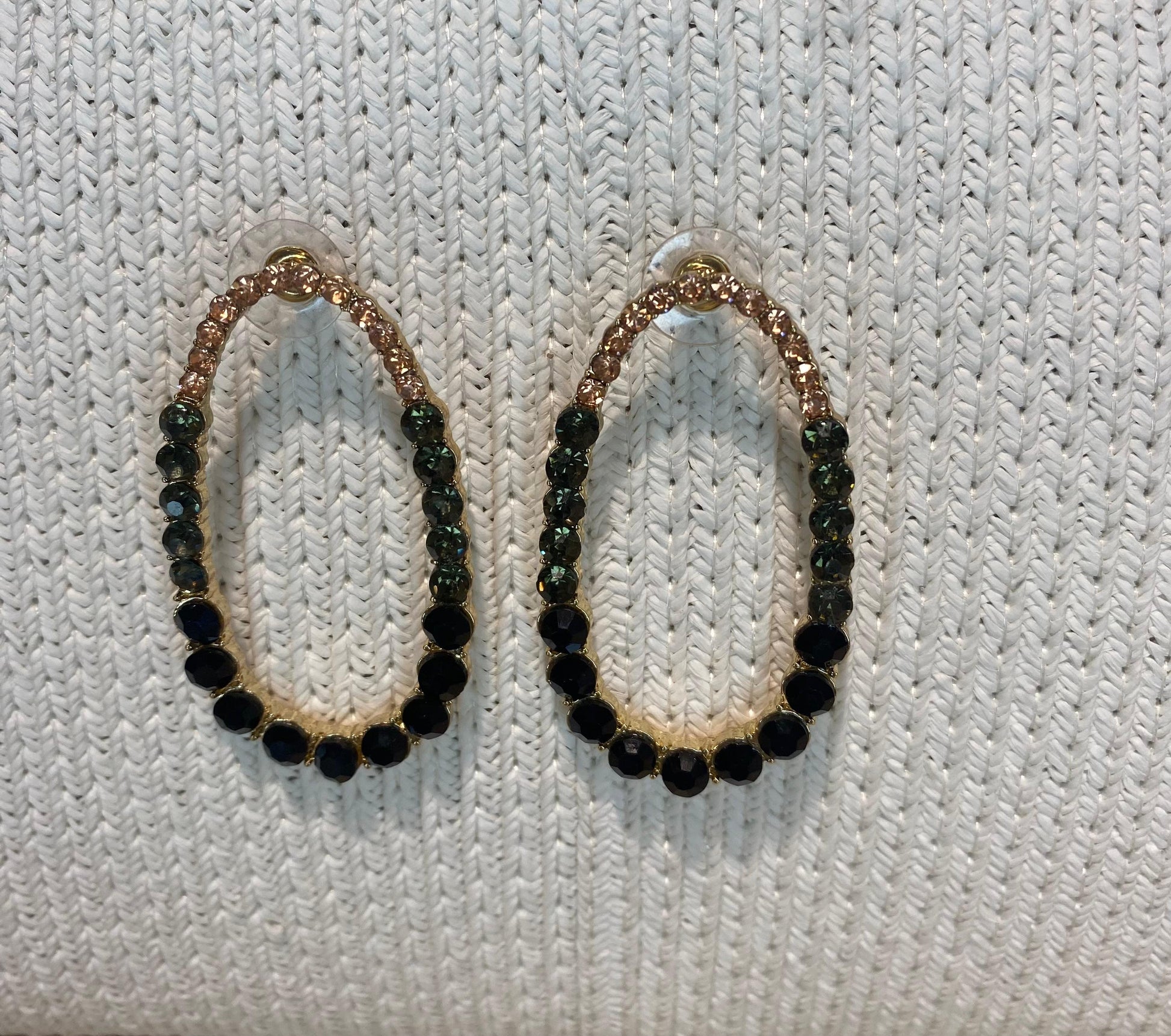Pendientes acero con circonita verde y negra.