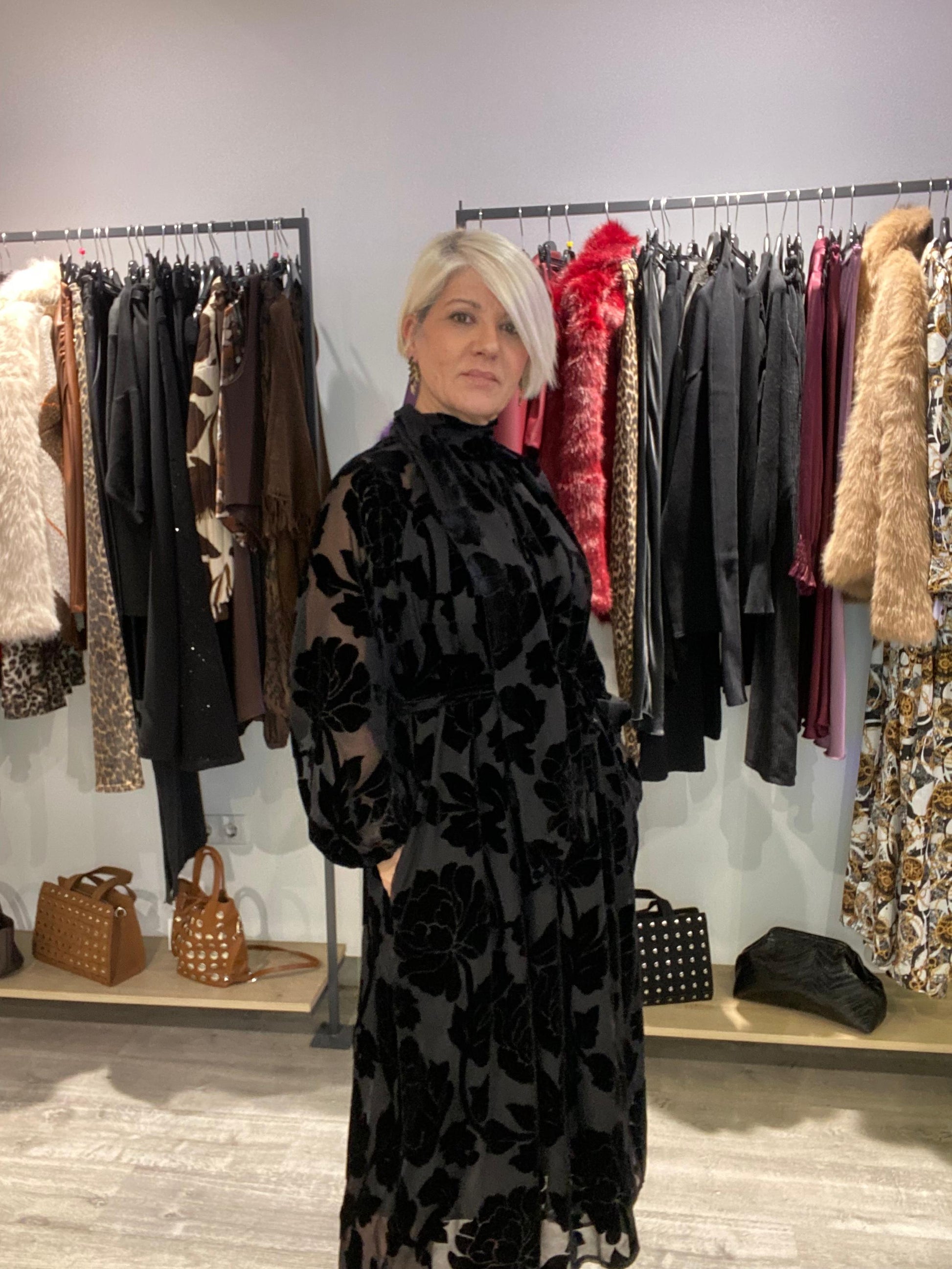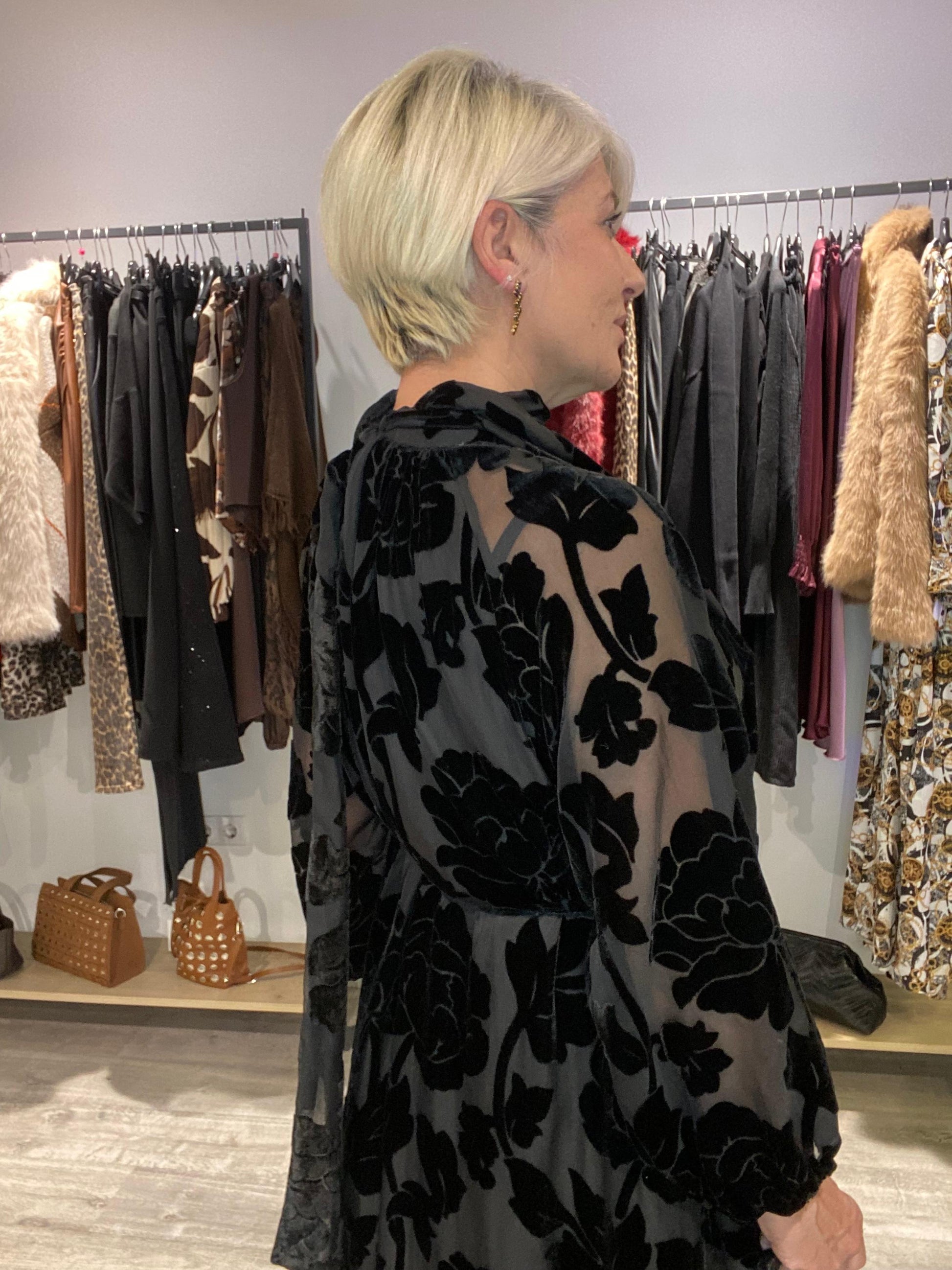 Vestido Camelia Terciopelo Floral - Elegancia Boho-Luxe Talla Única 38-52