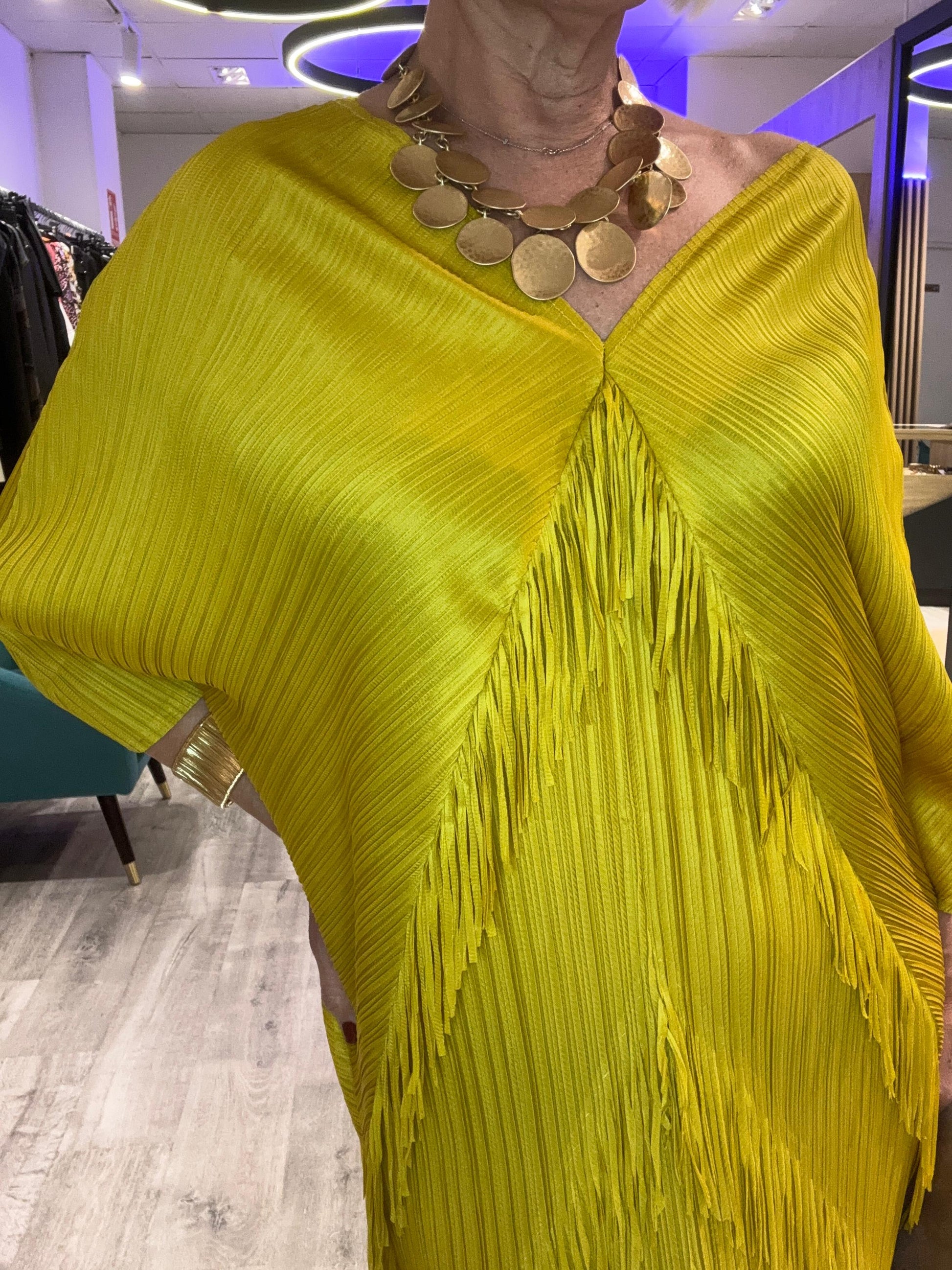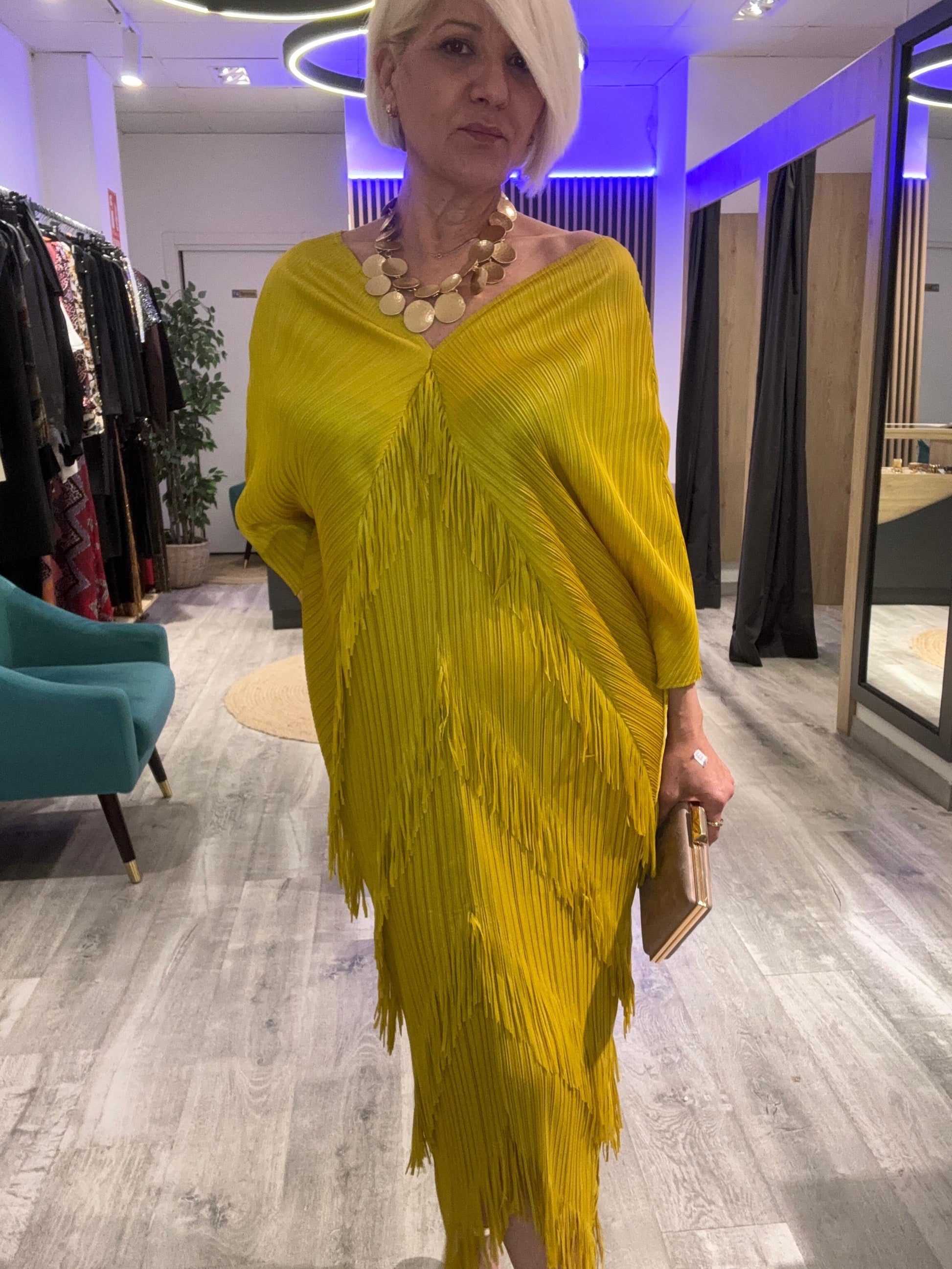 Vestido flecos amarillo Mostaza